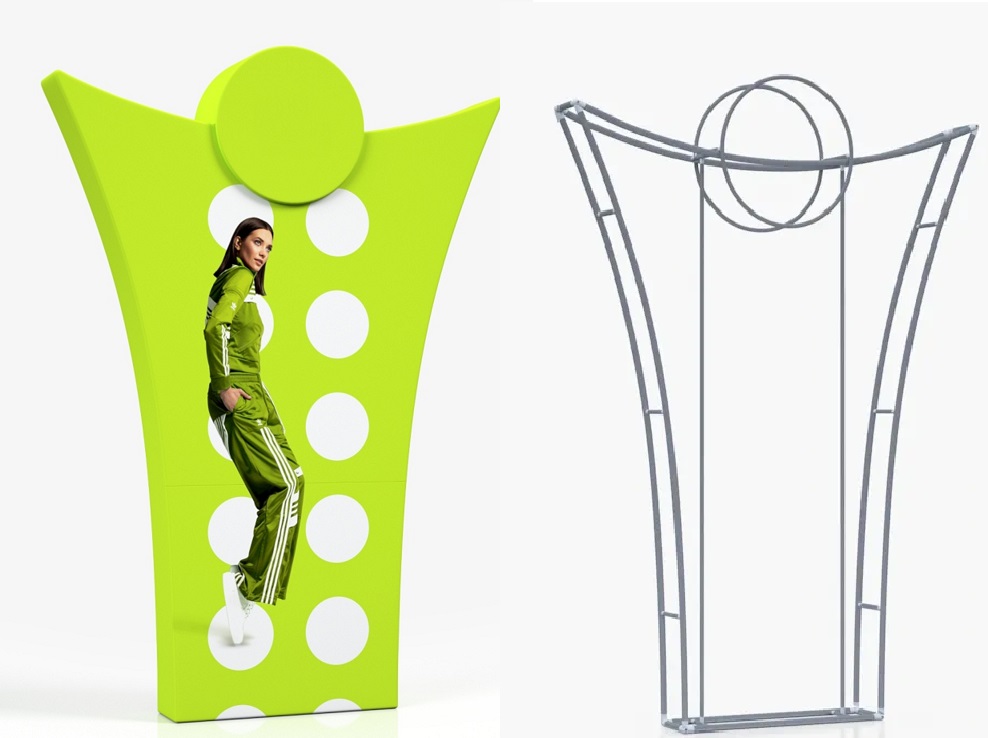 Lichtgewicht speciaal gevormd buizenframe waar u een dubbelzijdig geprint stretchdoek over heen trekt en aan de onderkant met een rits afsluit. Het systeem wordt in een tas geleverd. Voor de print dient u een drukklaar bestand aan te leveren. Zie PDF voor opmaak printbestand.